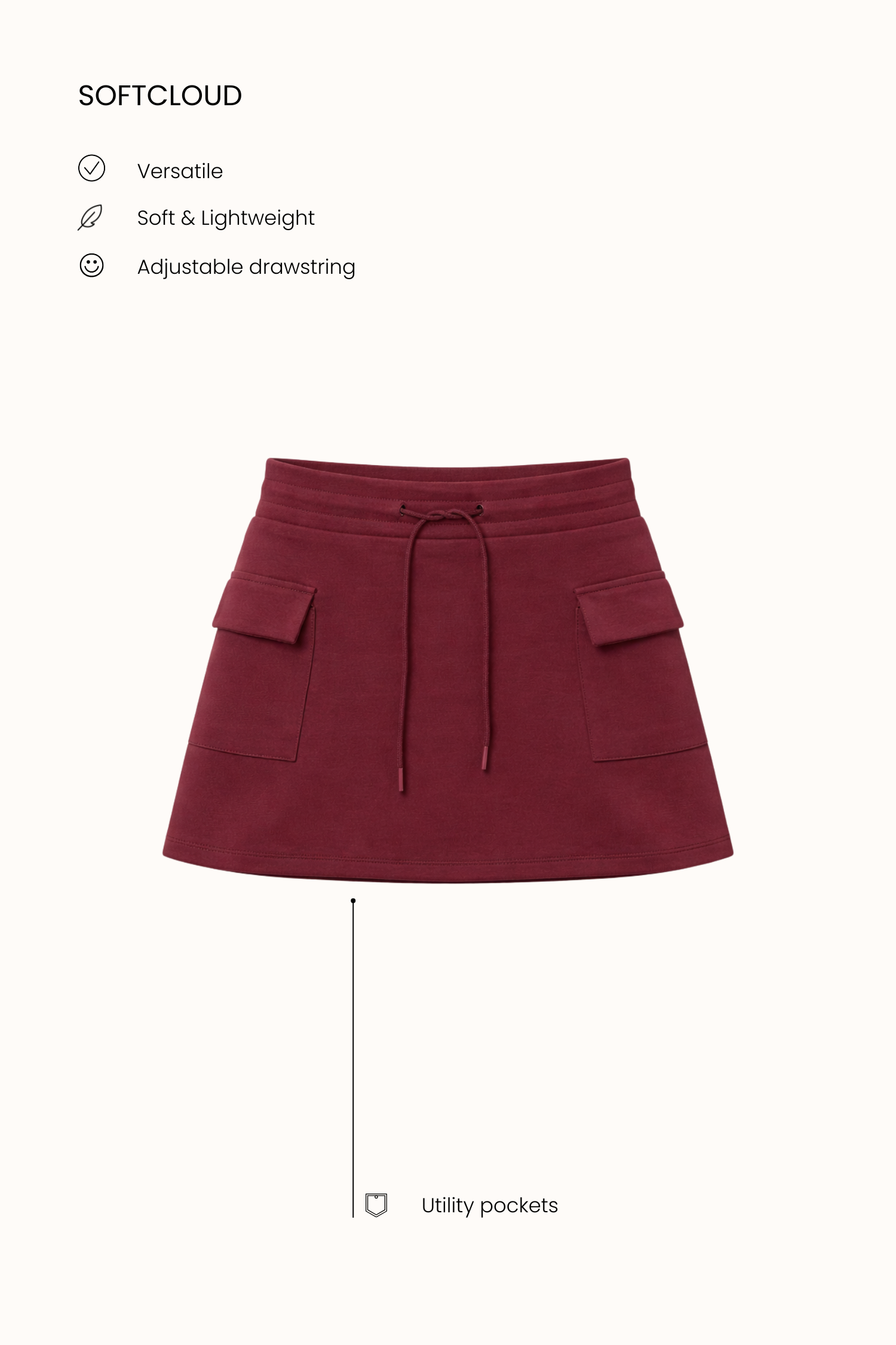 The Cargo Skirt blends a clean silhouette with functional details, giving you a stylish yet practical piece for everyday movement. Easy to wear, easy to style—perfect for active days or casual outings.