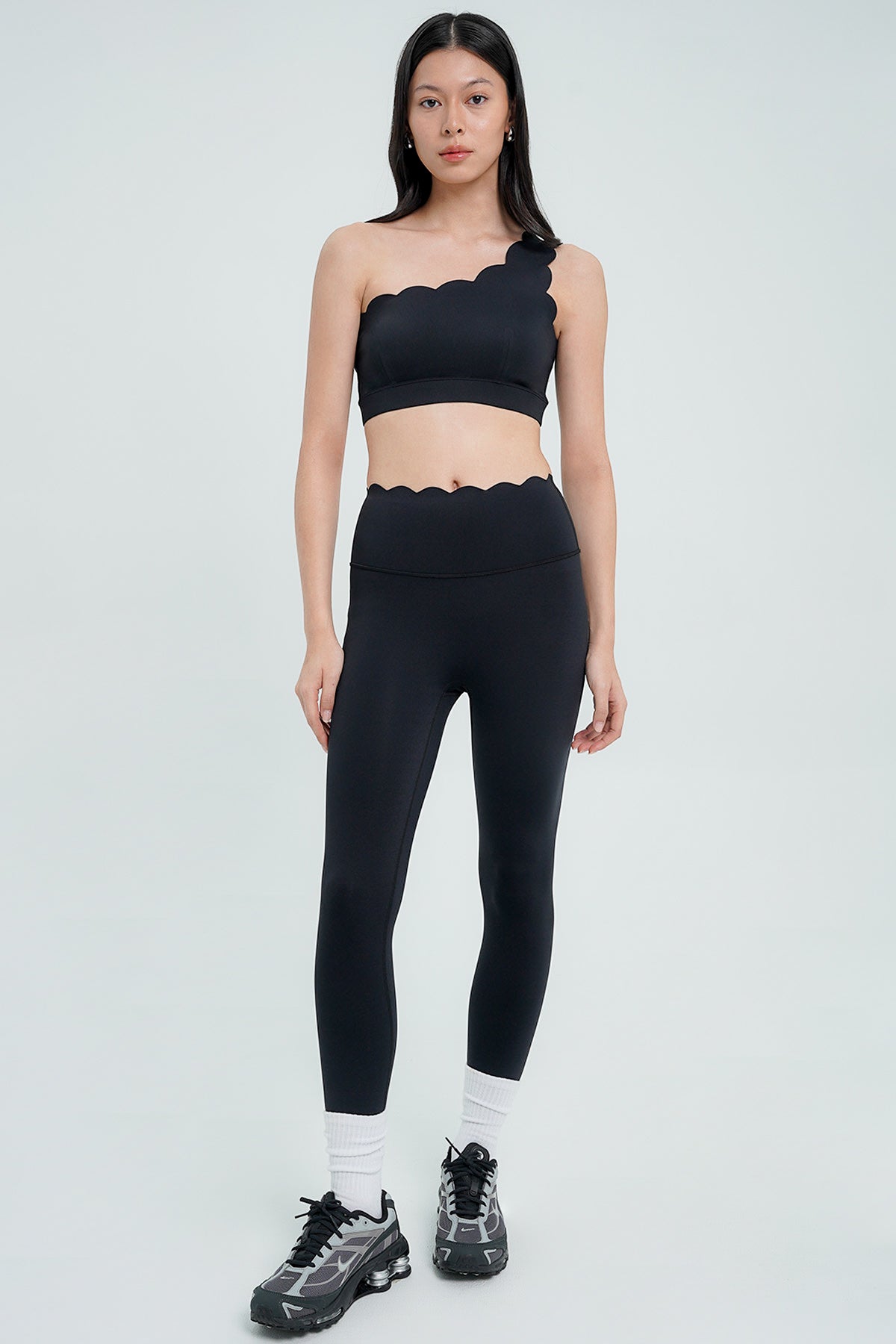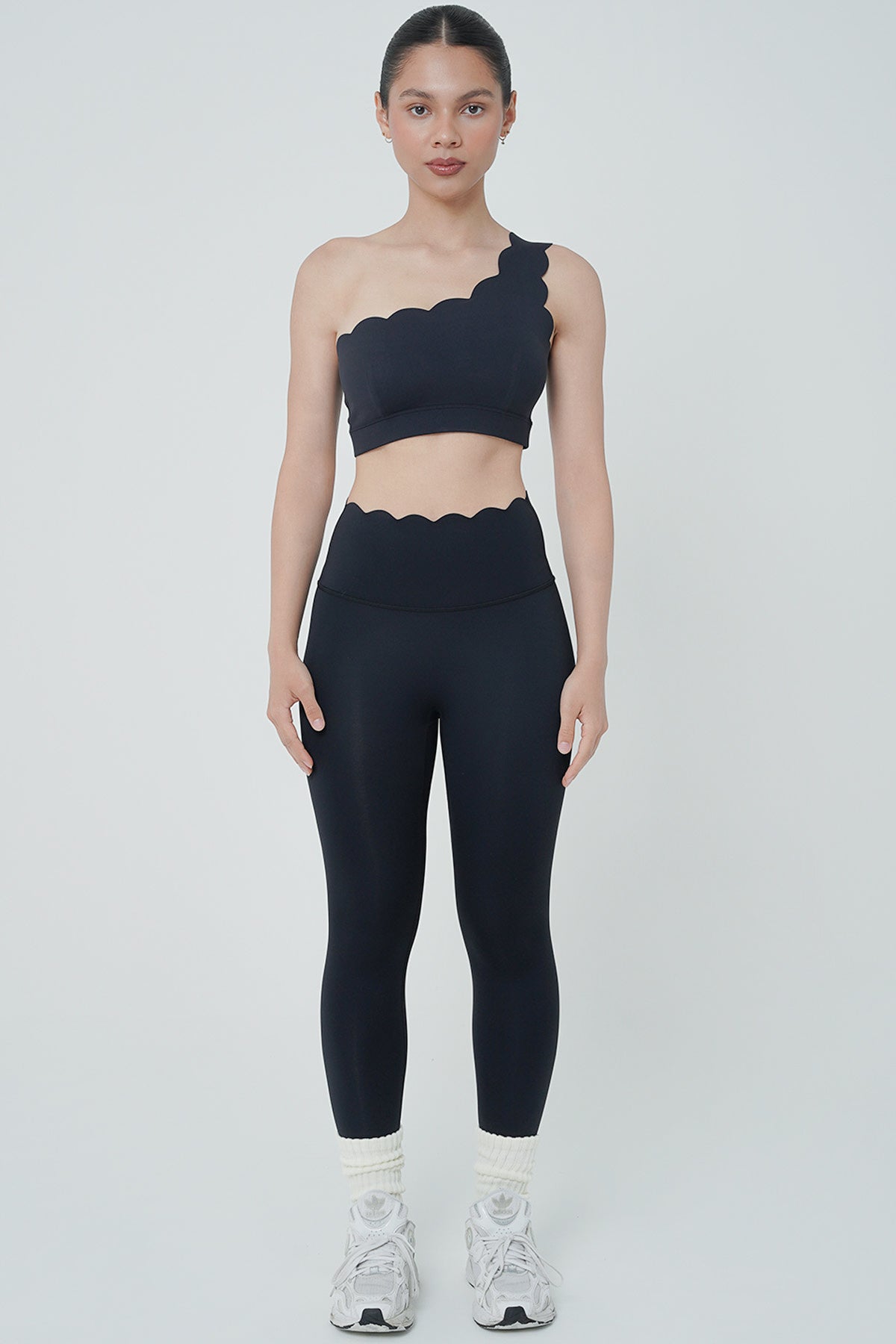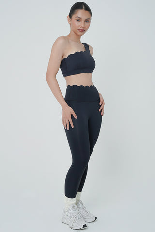 Discover the perfect blend of style and functionality with our Case Legging in Black. Designed for modern women who seek both comfort and chic aesthetics, these leggings feature a unique scallop laser cut design at the waist hem. The high waist provides a secure fit, making them ideal for a variety of activities, from yoga and Pilates to HIIT training and running.