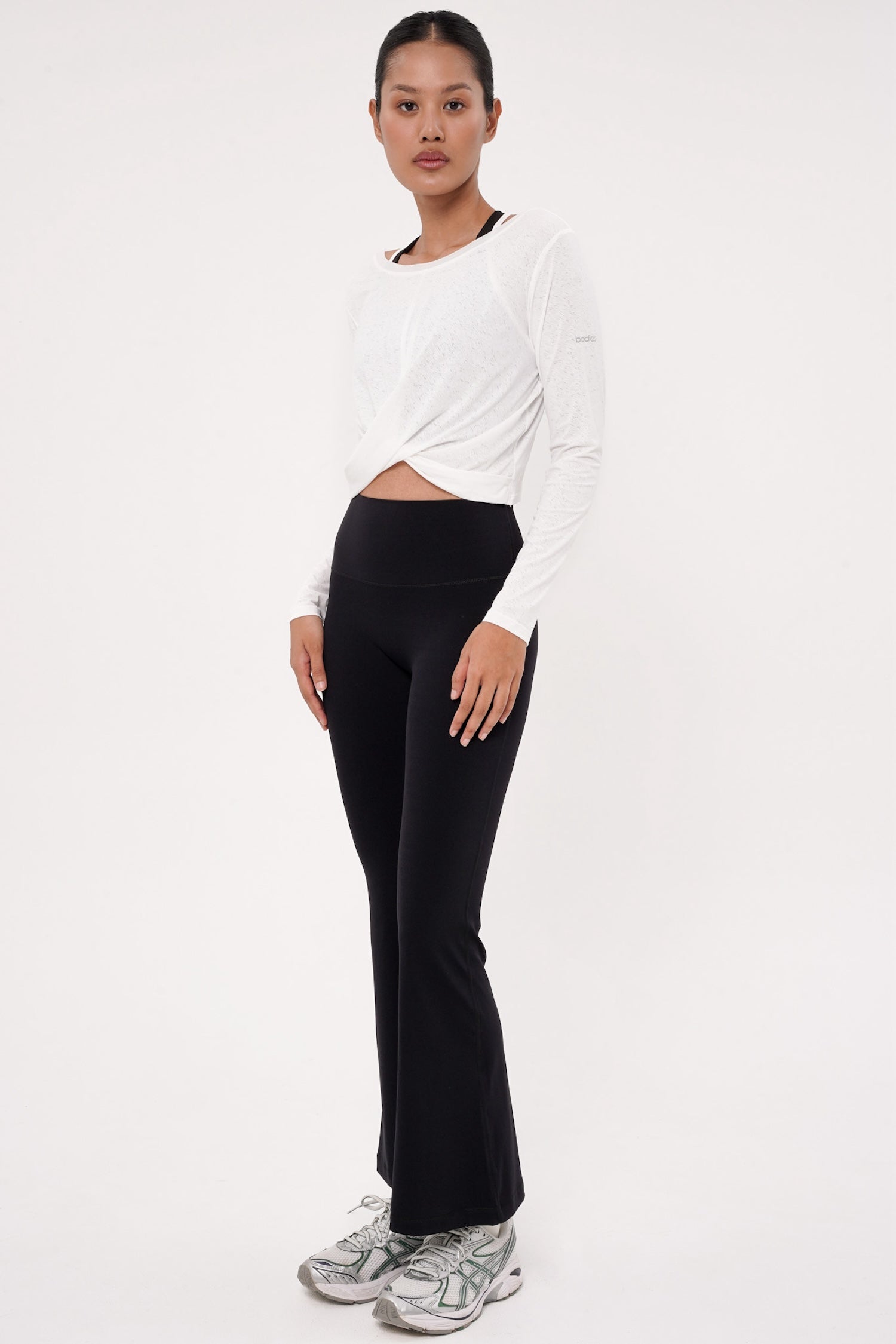 Effortlessly chic, the Dasha Long Sleeve Top brings modern simplicity to your everyday style. With its soft stretch fabric and subtle front twist detail, it flatters your shape while keeping you comfortable all day. Perfect for layering, lounging, or elevating your activewear look.