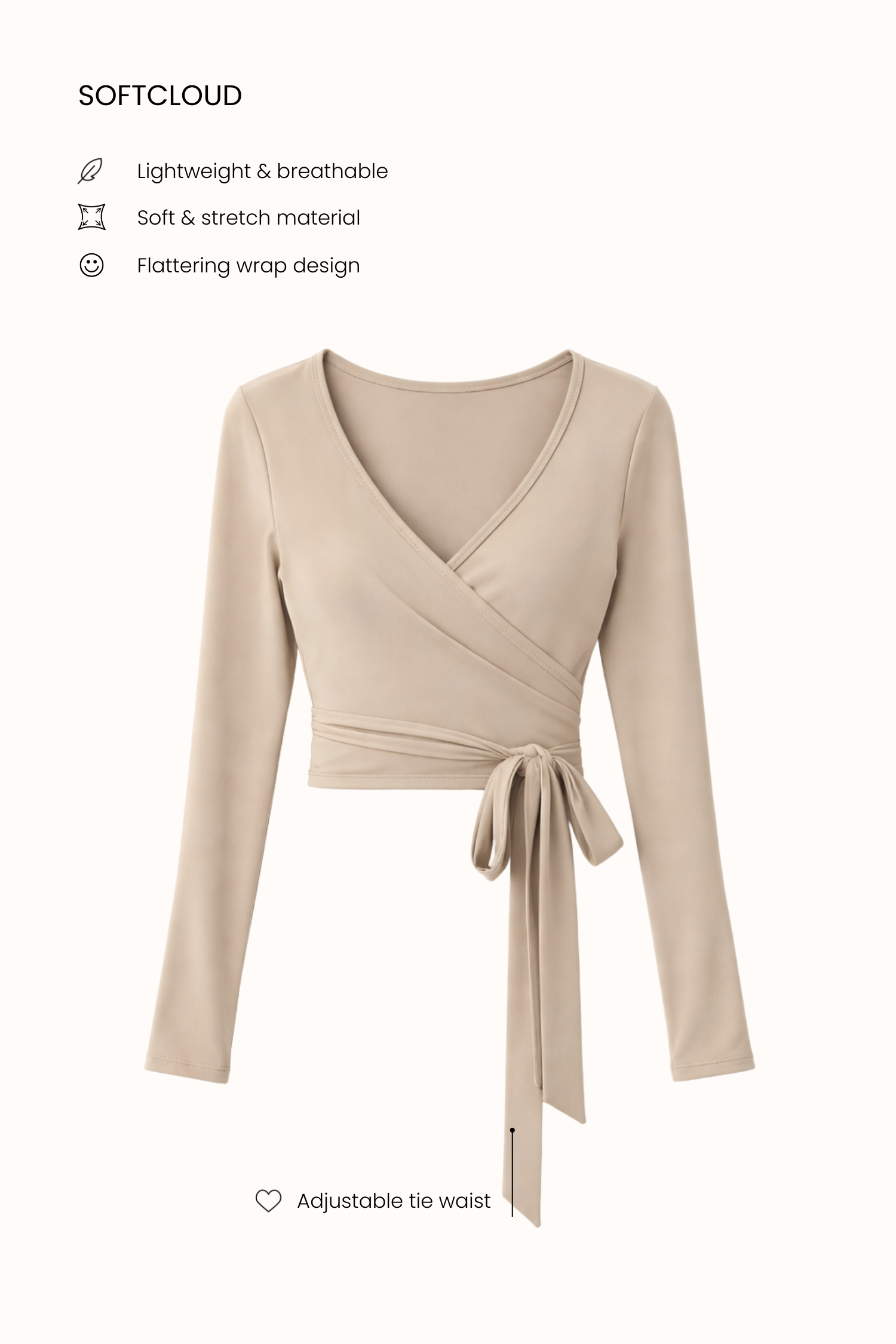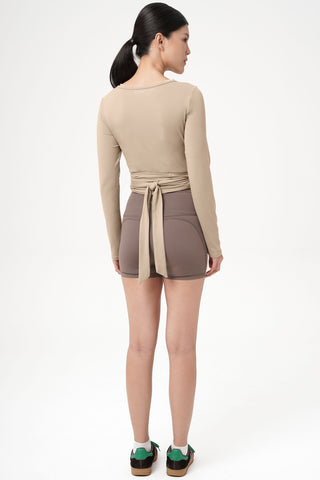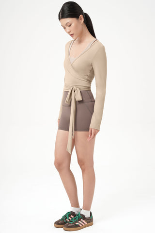 Where elegance meets comfort, the Eden Longsleeve Wrap Top is designed to flatter your shape and elevate your everyday look. Featuring a graceful wrap-front silhouette with adjustable side tie detail, this top hugs your waist beautifully while creating a soft, feminine drape. The deep V neckline adds a subtle touch of allure, making it perfect for both studio sessions and styled streetwear moments.