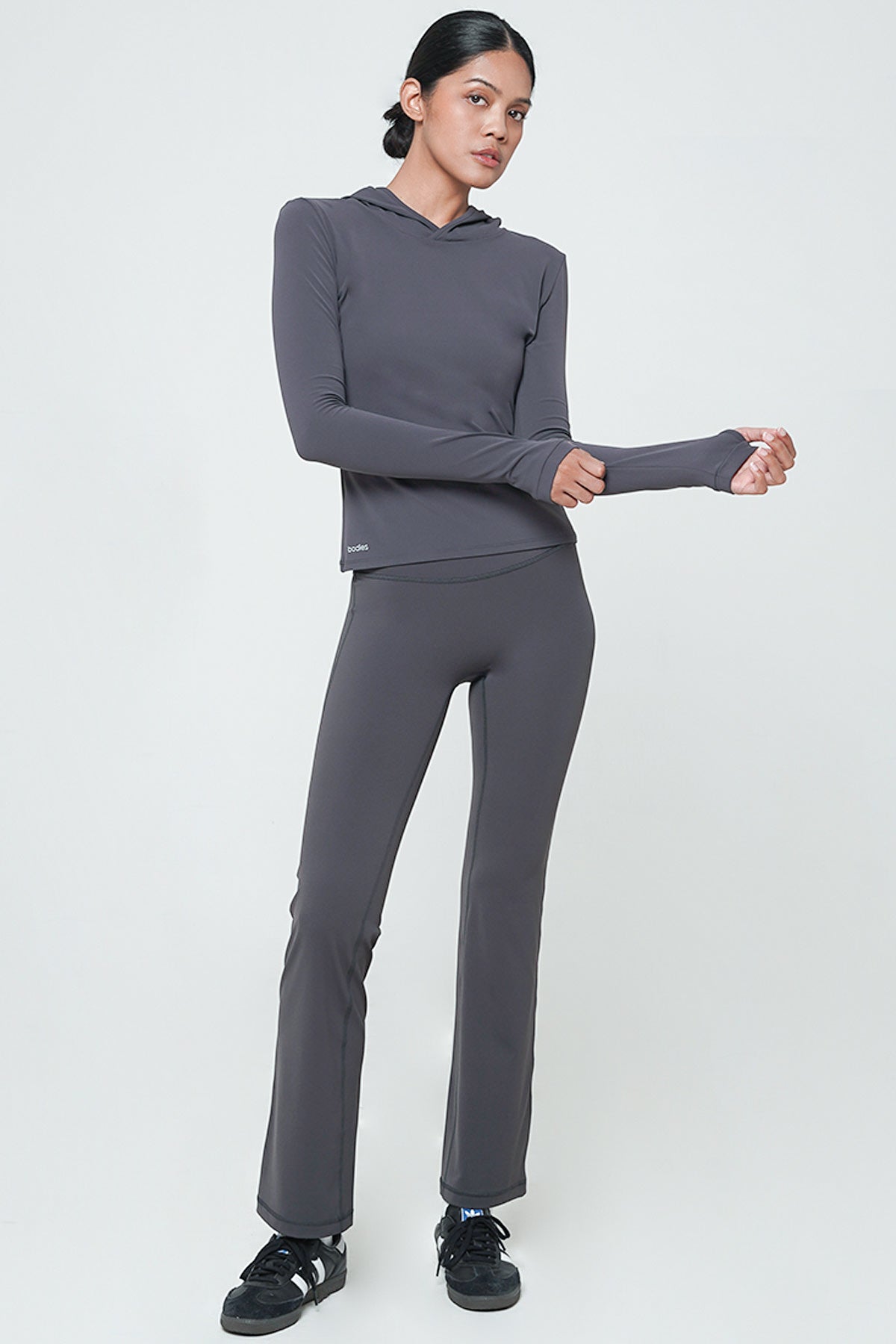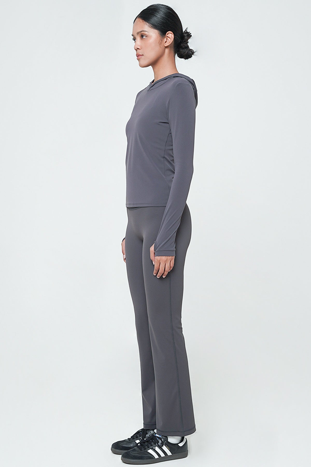 With its minimalistic yet chic design, the Fond Long Sleeve Top in Graphite Grey is incredibly versatile. Whether you're layering it under a jacket for a night out or wearing it solo for a laid-back day, this top enhances any outfit. The added hood elevates its functionality, providing extra warmth and style whenever you need it.