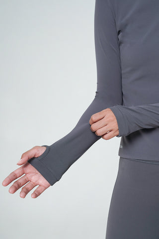 The Fond Long Sleeve Top in Graphite Grey is an essential addition to your wardrobe, blending comfort and style seamlessly. Crafted from soft, breathable fabric, this fitted top provides a luxurious second-skin feel that is perfect for both active days and casual outings. The unique thumb hole feature not only adds to its trendy appeal but also ensures that the sleeves stay in place during your favorite workouts or while you’re on the go.