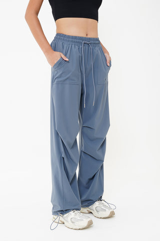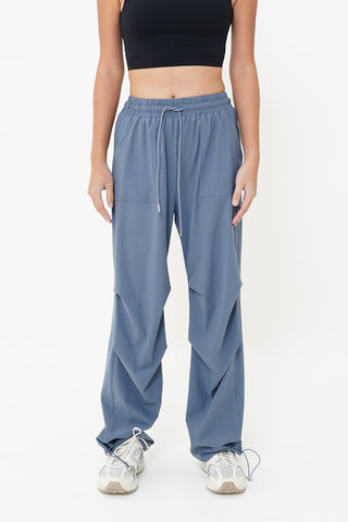 Introducing the Gentle Jogger in Gray Blue, the perfect blend of style and comfort for the modern individual. Crafted with a luxurious fabric, this jogger is designed to give you a velvety feel while ensuring maximum flexibility during your workouts or leisure time. The adjustable stretch waist with straps allows for a customized fit, making it ideal for both high-energy activities and relaxed lounging.