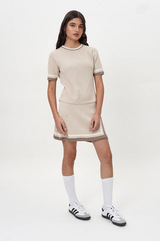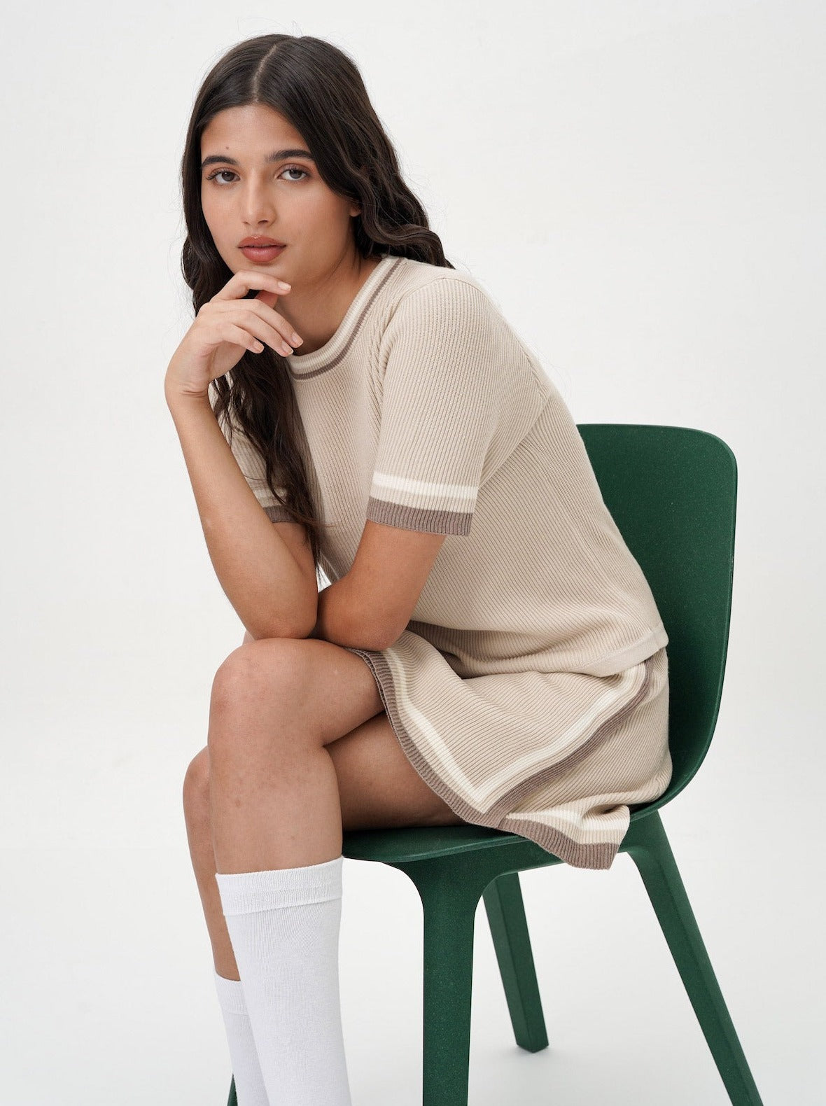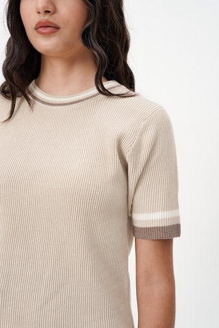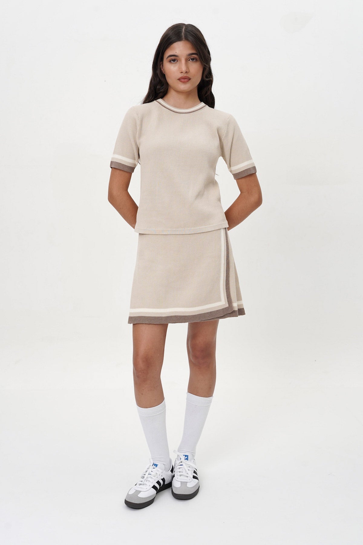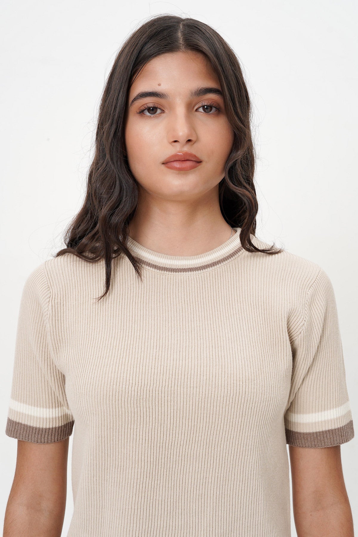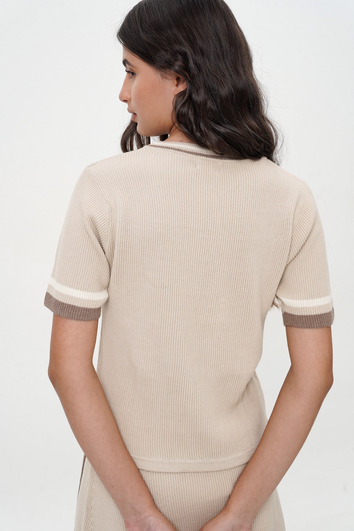 Introducing the Kyle Knit Top in Cream (2S LEFT), a must-have addition to your wardrobe that combines comfort with style. Crafted from 100% cotton, this top promises superior softness that feels gentle against the skin, making it perfect for all-day wear. The unique color combo line detail on the sleeves and neckline adds a touch of modern flair, ensuring you stand out effortlessly.