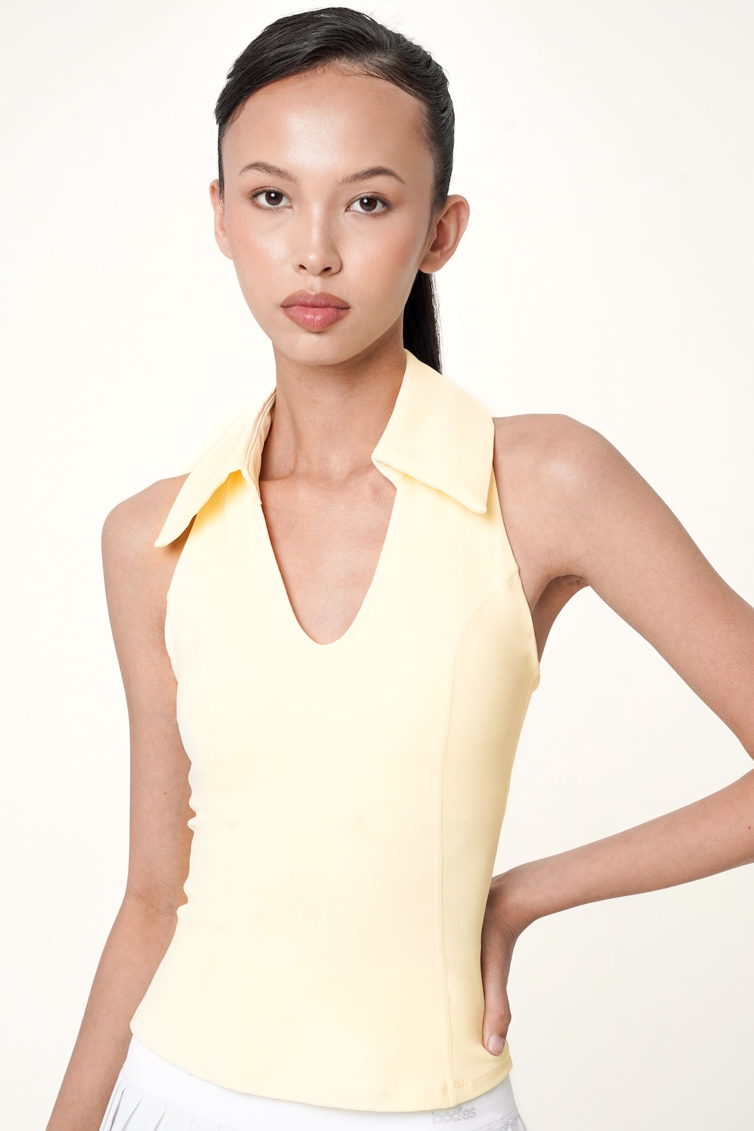 Own the day with Pavilion Polo Top, a modern twist on the classic polo. With its subtle V-neckline, structured collar, and flattering cut, it strikes the perfect balance between sporty ease and refined style. Removable bra padding adds versatile support, while the design naturally enhances your figure without trying too hard.