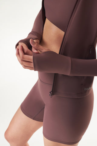 Designed with subtle structure and everyday ease, Raglan Jacket blends sporty lines with refined tailoring. Raglan sleeves create a relaxed, athletic feel, while princess seams contour the body for a flattering, streamlined shape. Hidden zip pockets are tucked neatly along the seams, offering secure storage without disrupting the clean look. Lightweight, comfortable, and ready for layering. It’s the kind of jacket that works effortlessly from casual days to on-the-go moments.