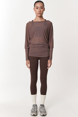 Robic Off-Shoulder Sheer Top in Espresso
