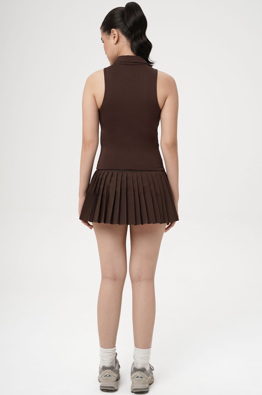 The Sideline Pleated Skirt is where movement meets polish. With fluid pleats and a flattering high-rise fit, it’s designed to move with you—on the go or off the clock. Lightweight with just the right amount of stretch, this skirt brings effortless elegance to any outfit. Pair it with a sleek tank or an oversized sweatshirt for a look that’s equal parts sporty and chic.