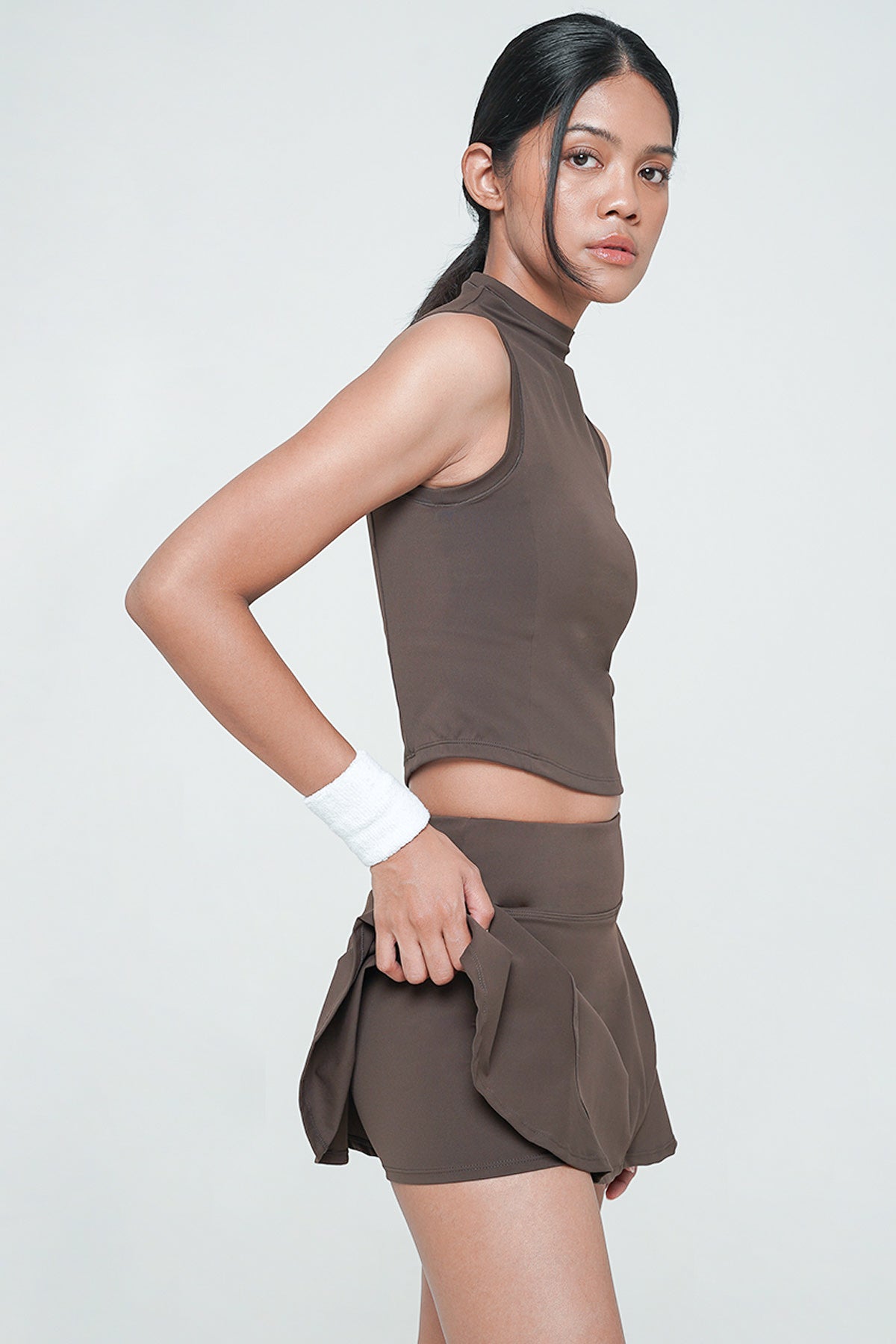 With the Slice Skirt in Espresso, you can easily elevate your style while enjoying the luxurious comfort this piece offers. Pair it with a simple top and your favorite heels for an effortlessly chic look, or style it with a casual tee and sneakers for a more laid-back vibe. This versatile skirt is truly a must-have for any fashion-forward individual's wardrobe.