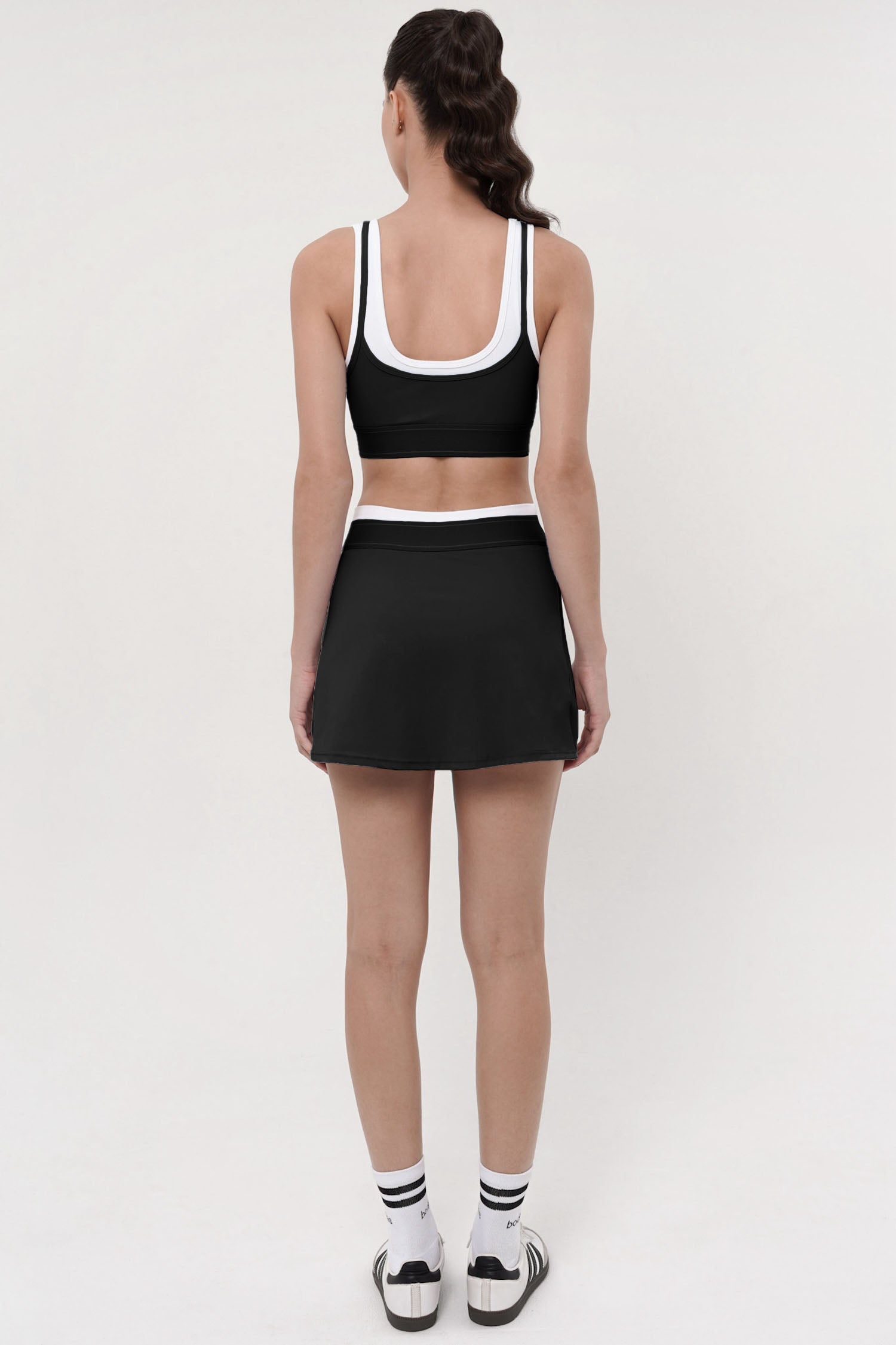 The Slide Skirt is designed for effortless movement and a clean, sporty look. With its smooth A-line silhouette, contrast detailing on the waistband, and built-in shorts for secure comfort, this skirt keeps you confident through both active moments and daily activities. Lightweight, flattering, and easy to pair — it’s the perfect blend of style and performance.
