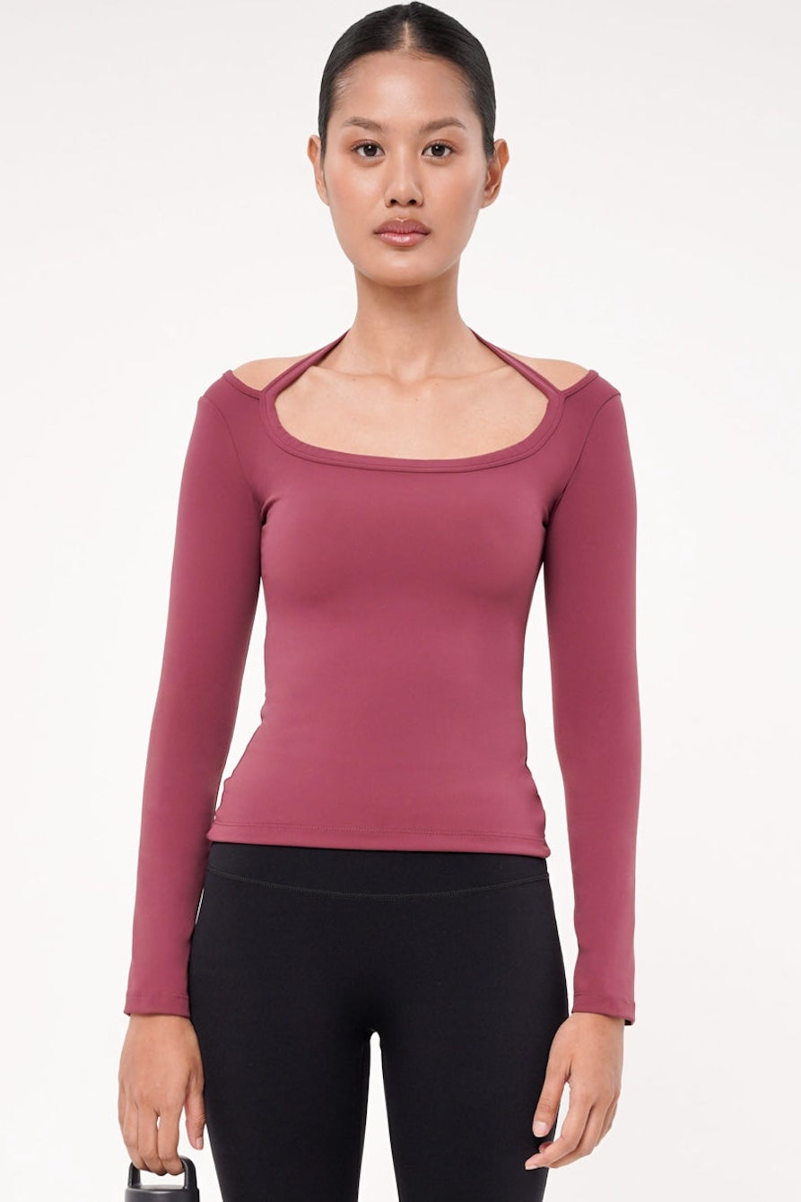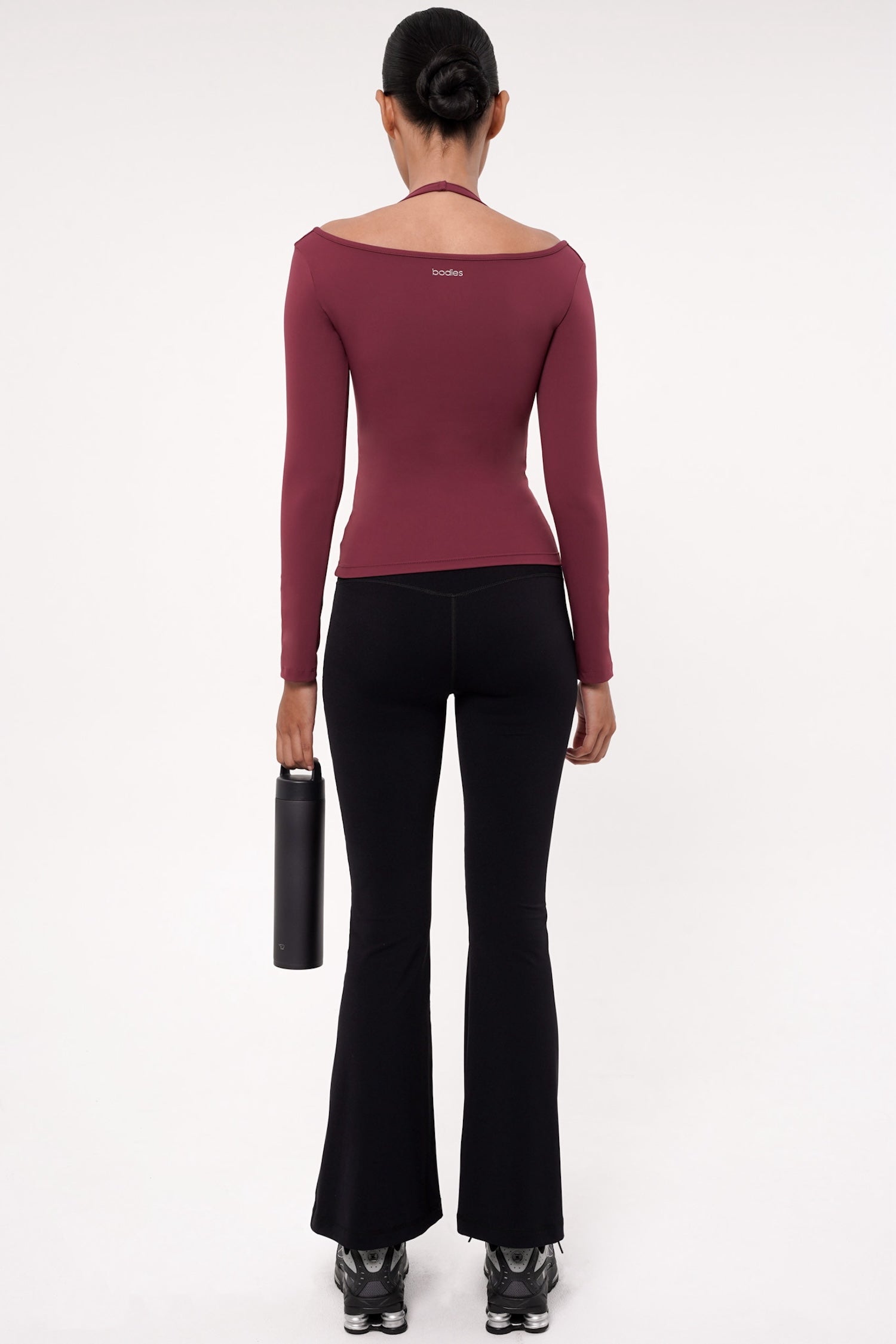 Solace Long Sleeve Bra Top in Burgundy Wine