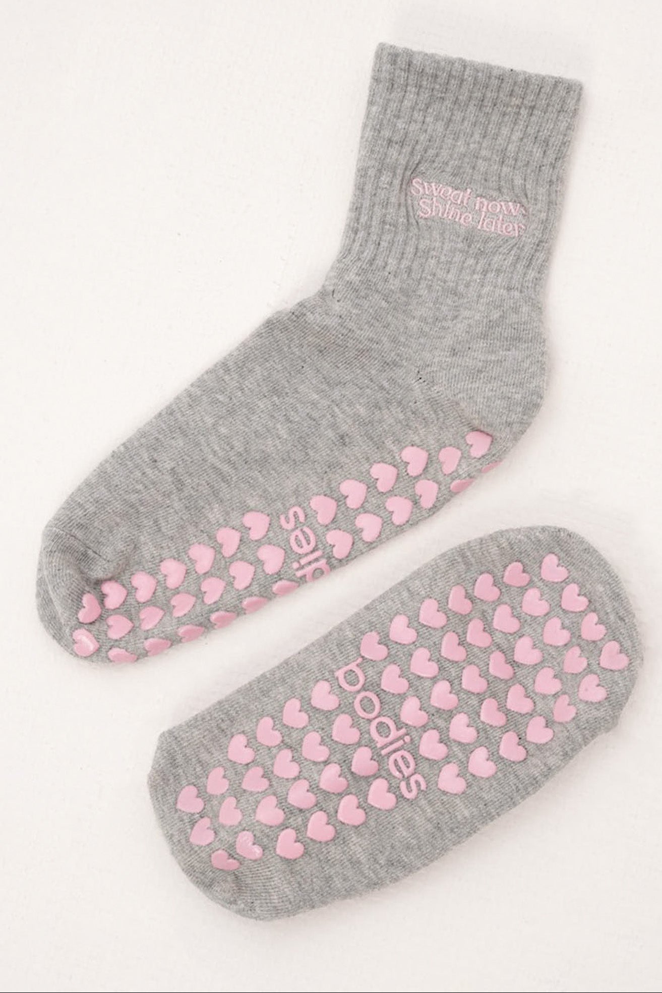 Pink heart grip design ensures steady footing during workouts, yoga, or lounging.
