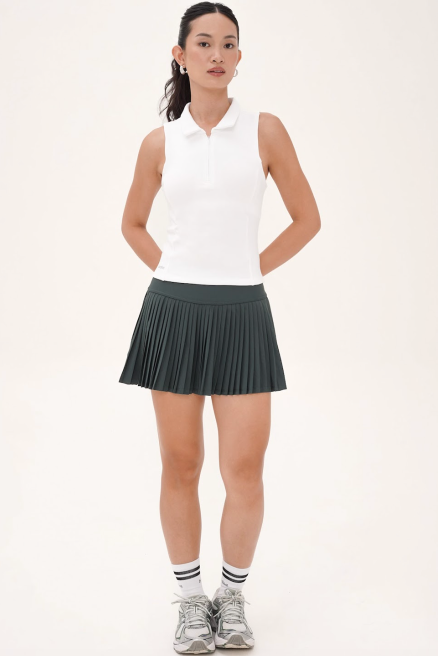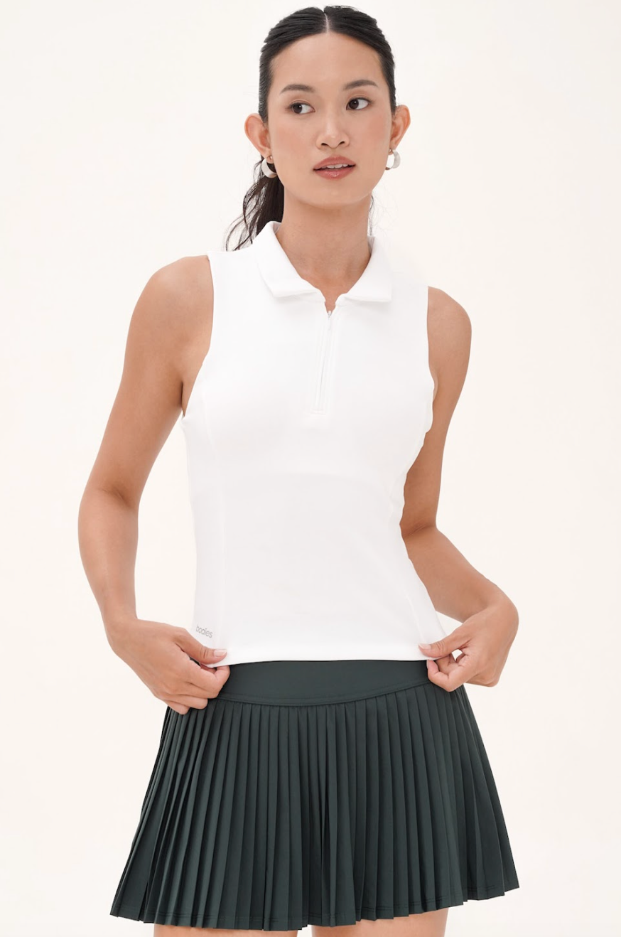 Meet the sporty staple you’ll wear on and off the court. The Venture Bra Top is cut from clean, soft fabric in a timeless sleeveless polo silhouette—complete with a removable bra for extra ease. Whether it’s padel, golf, tennis, or just your weekend plans, this top delivers all-day comfort with a polished edge that styles effortlessly with skirts, chinos, or your favorite pair of denim.