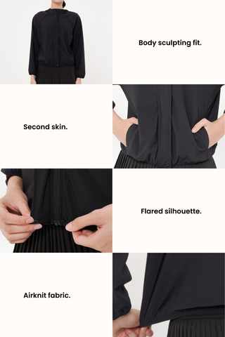 Say hello to your new urban sidekick—the Victory Jacket. Crafted from our softest-yet water-repellent fabric, this jacket is ready to take on city dust, light drizzles, and nonstop days with effortless style. The hood’s got your back when the weather acts up, while outer and inner pockets keep your small essentials right where you need them. Finished with sleek buttons and a relaxed fit, it’s the perfect post-Pilates layer or scooter-ready cover-up for zipping through town.
