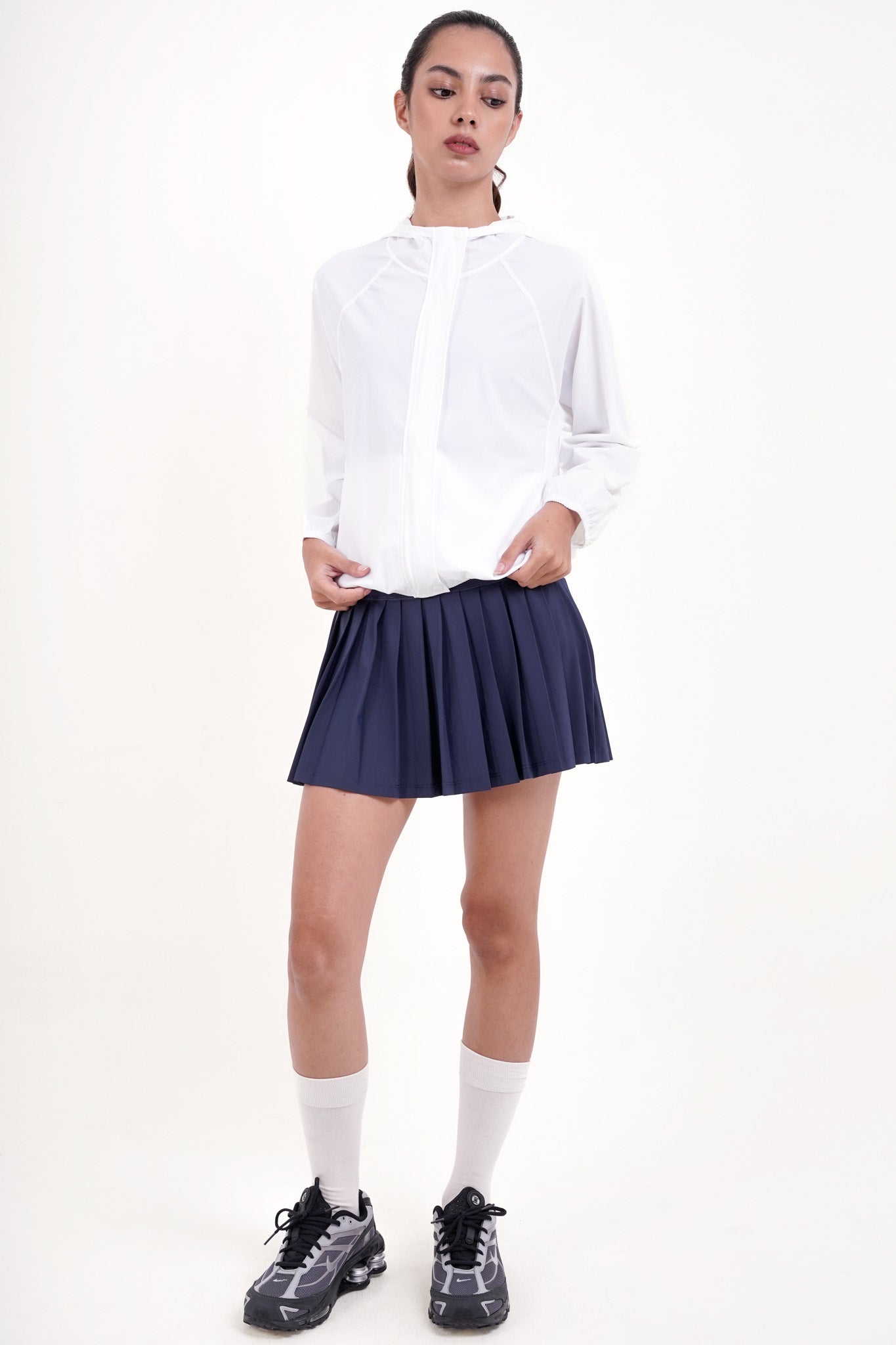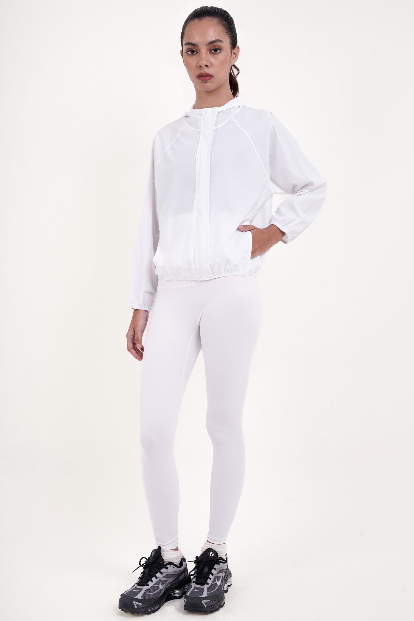 Say hello to your new urban sidekick—the Victory Jacket. Crafted from our softest-yet water-repellent fabric, this jacket is ready to take on city dust, light drizzles, and nonstop days with effortless style. The hood’s got your back when the weather acts up, while outer and inner pockets keep your small essentials right where you need them. Finished with sleek buttons and a relaxed fit, it’s the perfect post-Pilates layer or scooter-ready cover-up for zipping through town.